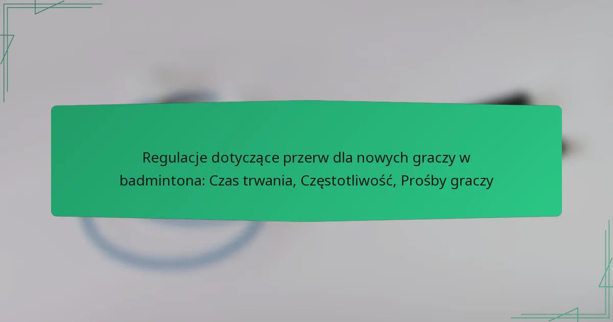 Regulacje dotyczące przerw w badmintonie odnoszą się do zasad regulujących czas trwania i częstotliwość przerw podczas meczów. Te regulacje zapewniają fair play i pozwalają graczom na regenerację, strategię lub rozwiązanie problemów, które mogą pojawić się w trakcie gry.